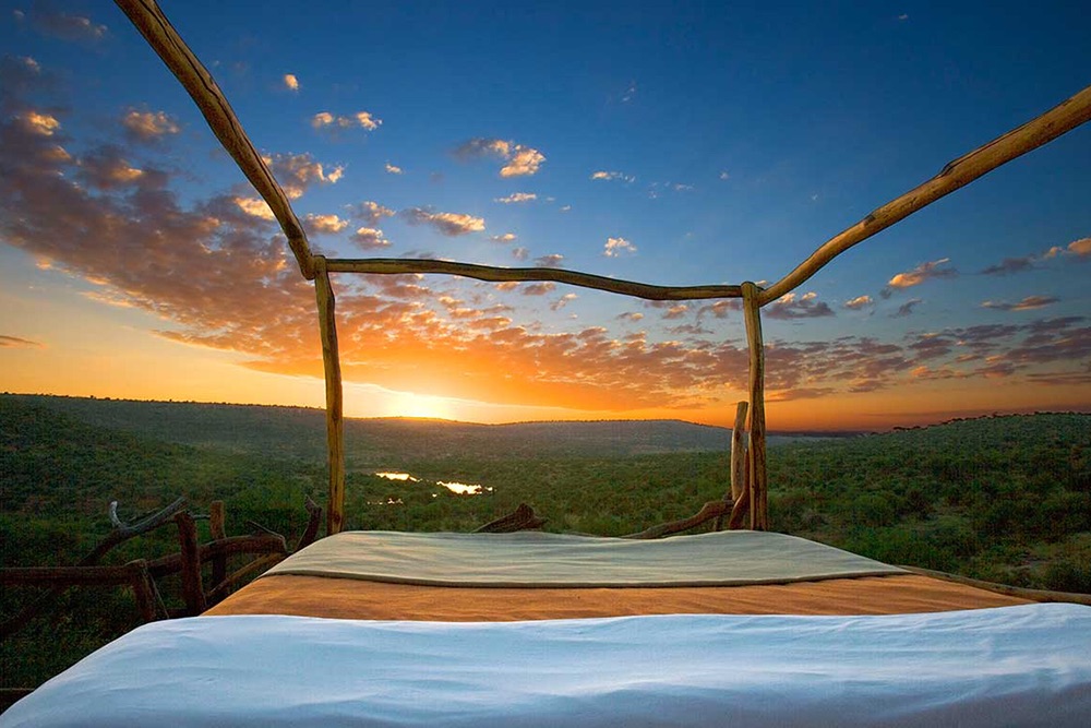 The main hotel is a traditionally built with the local environment in mind, a two-tiered rondavel, with a dining area, bar, sweeping veranda, and 360-degree panoramic views.